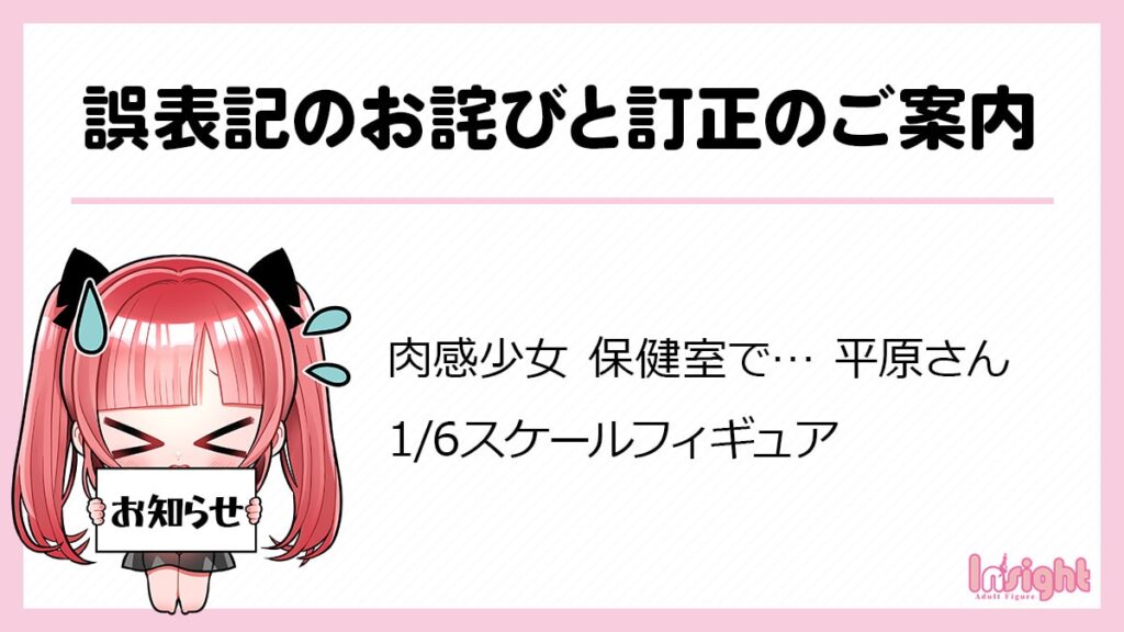 〈誤表記のお詫びと訂正のご案内〉肉感少女 保健室で… 平原さん 1/6スケール